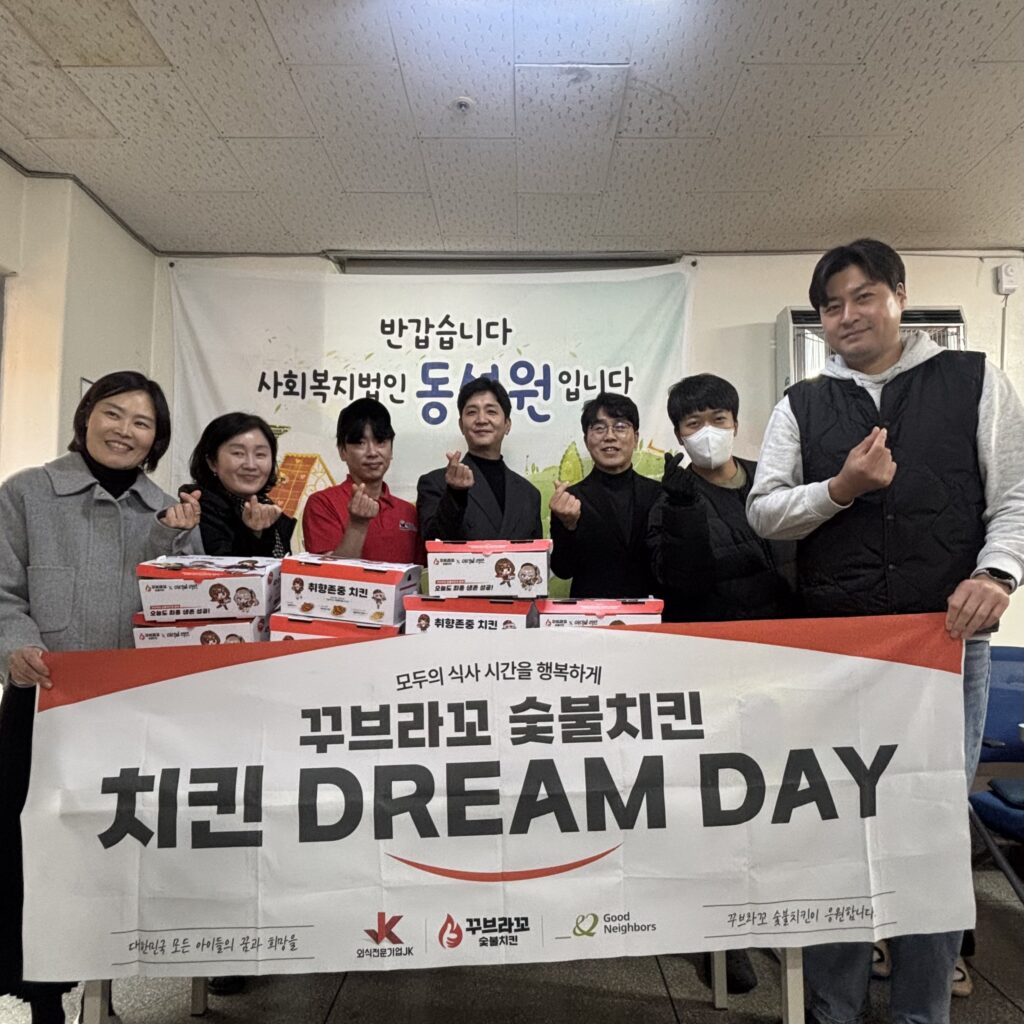 꾸브라꼬숯불치킨을 운영 중인 외식전문기업JK(대표 전민호, 김태훈)가 굿네이버스와 함께 하는 7월 ‘치킨 드림데이(DREAM DAY)’ 행사를 용인 지역에서 진행하며 무더운 여름날에도 사랑실천을 이어갔다.