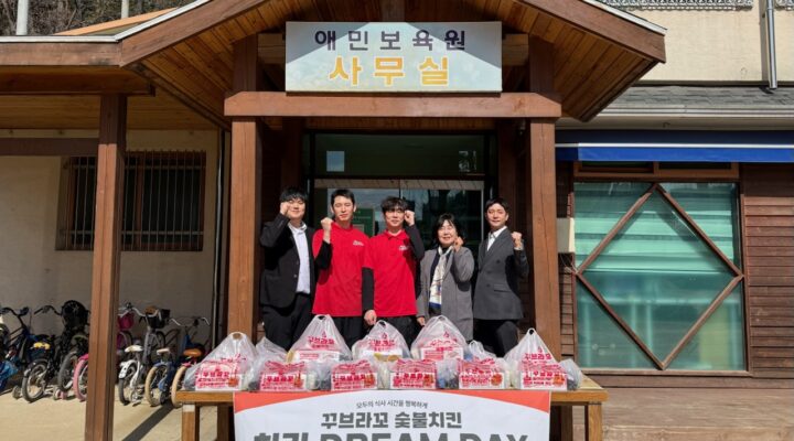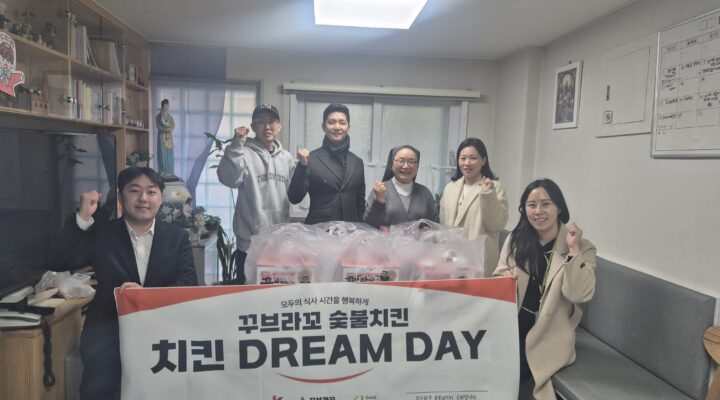 꾸브라꼬숯불치킨, 춘천 애민보육원 등 대상으로 ‘치킨 DREAM DAY’ 치킨 전달 꾸브라꼬숯불치킨이 매월 전국 아동복지시설을 대상으로 진행하는 정기 나눔 프로그램 ‘치킨 DREAM DAY(드림데이)’가 이번에는 강원도 춘천에서 진행됐다. ㈜외식전문기업JK(대표 김태훈)가 운영하는 꾸브라꼬숯불치킨은