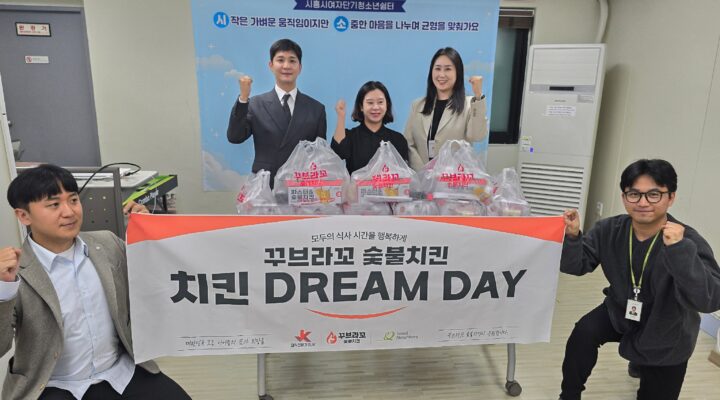 꾸브라꼬숯불치킨, ‘치킨 DREAM DAY’ 통해 시흥 청소년쉼터에 따뜻한 나눔 꾸브라꼬숯불치킨이 국제구호개발 NGO 굿네이버스와 함께 마련된 사회공헌 프로그램 나눔활동 ‘치킨 DREAM DAY(드림데이)’를 진행하며 지역사회 청소년들과 함께 했다. 행사는 10월