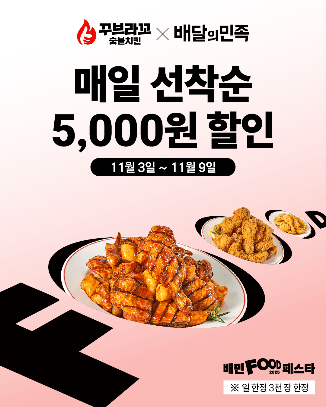 꾸브라꼬 숯불치킨, 배달의민족 ‘FOOD페스타’서 할인 프로모션 실시
