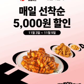 치킨브랜드 꾸브라꼬숯불치킨이 배달 플랫폼 배달의민족서 진행되는 ‘FOOD 페스타(푸드페스타)’ 프로모션에 참여하며 할인혜택을 제공 중이다. 11월 3일 시작되어 11월 9일까지 일주일간 진행되는 배민 ‘FOOD 페스타’ 프로모션에서는 매일 선착순 최대 5천 원의 할인을 적용 받을 수 있다. 주문 금액이 24,000원 이상이면 2,000원 할인, 30,000원 이상이면 5,000원 할인이 가능하다. 꾸브라꼬숯불치킨에 따르면 이번 이벤트는 소비자들이 배달 서비스를 이용하는 [...]