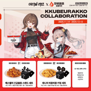 대한민국 숯불치킨 브랜드 '꾸브라꼬숯불치킨'이 인기 온라인 게임 ‘이터널 리턴’과 손잡고 특별 굿즈 콜라보레이션을 진행한다. 이번 협업은 11월 14일부터 12월 12일까지 약 한 달간 진행되며, 준비된 물량 소진 시 조기 종료될 예정이다. 행사 기간 동안 꾸브라꼬숯불치킨은 ‘이터널 리턴’의 인기 캐릭터인 ‘에스텔’과 ‘레니’를 활용한 굿즈 세트를 선보인다. 구성품은 ▲아크릴 스탠드 2종 ▲아크릴 키링 4종 ▲포토카드 6종 등으로, [...]